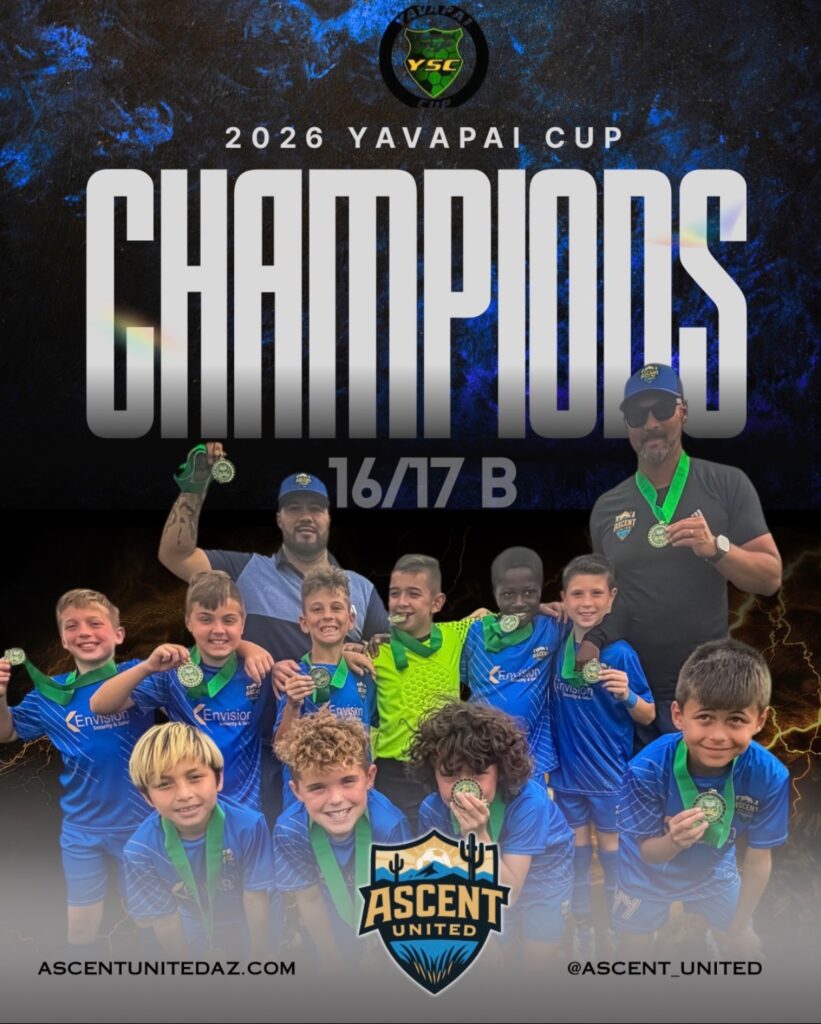 Prescott Valley, AZ β March 29, 2026 The Ascent United Boys 2016/17 team added another trophy to the cabinet this past weekend, winning the Yavapai Cup Tournament in Prescott Valley with an outstanding display of skill, teamwork, and determination. Held March 27β29, 2026, and hosted by Yavapai Soccer Club at venues including Mountain Valley Park,…